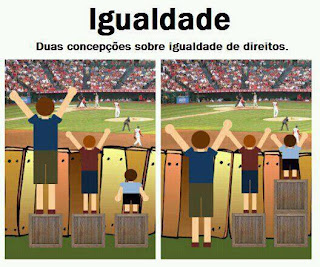 Neste sentido a política de cotas por exemplo, numa sociedade racista, onde o racismo produziu pobreza e desigualdade, é um modo de buscar a isonomia, a real igualdade de condições perante à lei. A política de cotas para o gênero feminino numa sociedade machista visa o mesmo etc. Ou como conseguiu explicar com maestria o sociólogo português Boaventura de Sousa Santos**: